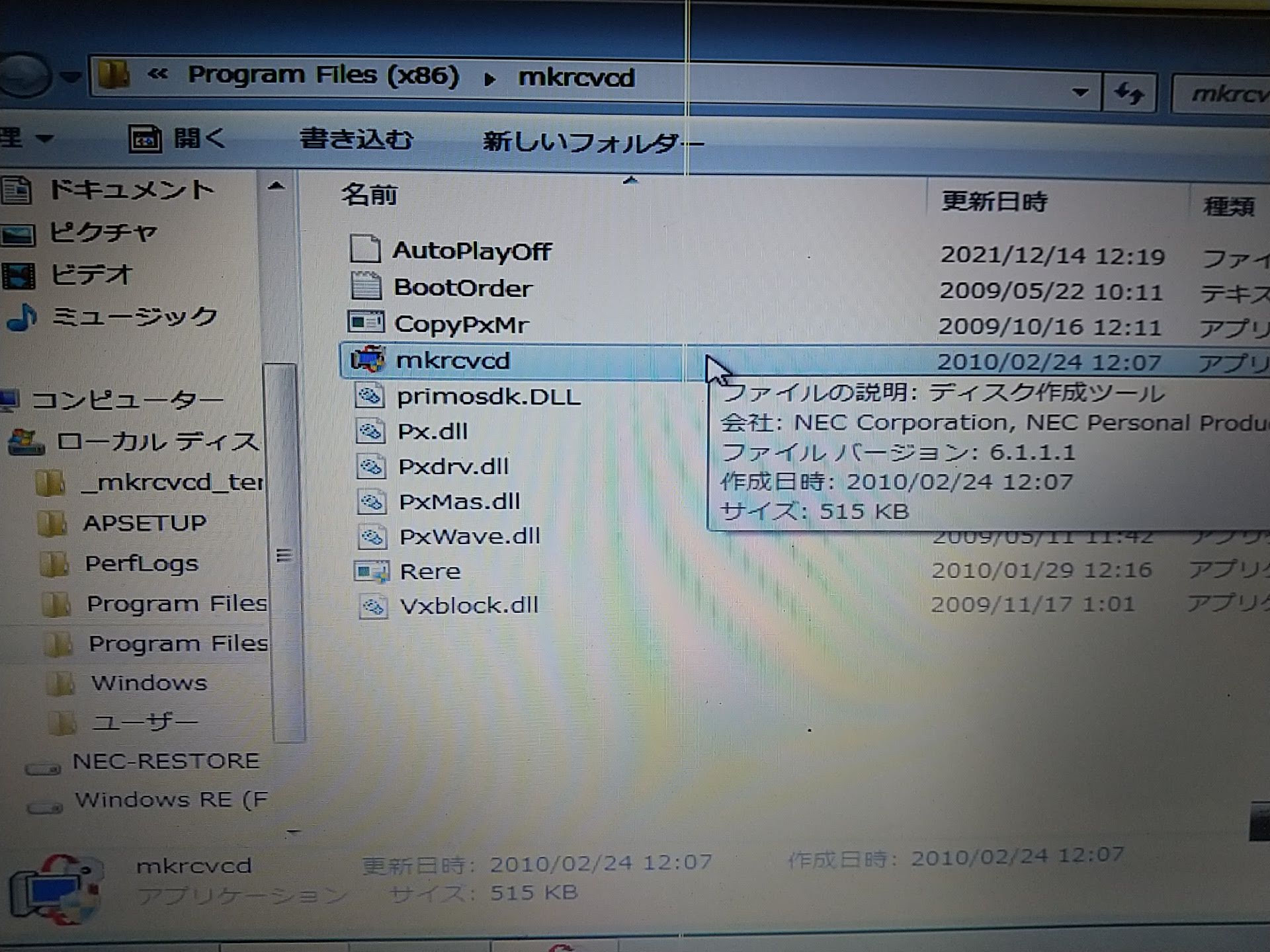 \Program Files(x86)\ 配下に4.でバックアップしたmkrcvcdフォルダをコピー