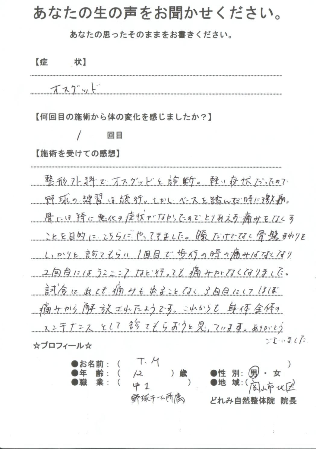さて、オスグッドで御来院の方の声です。
